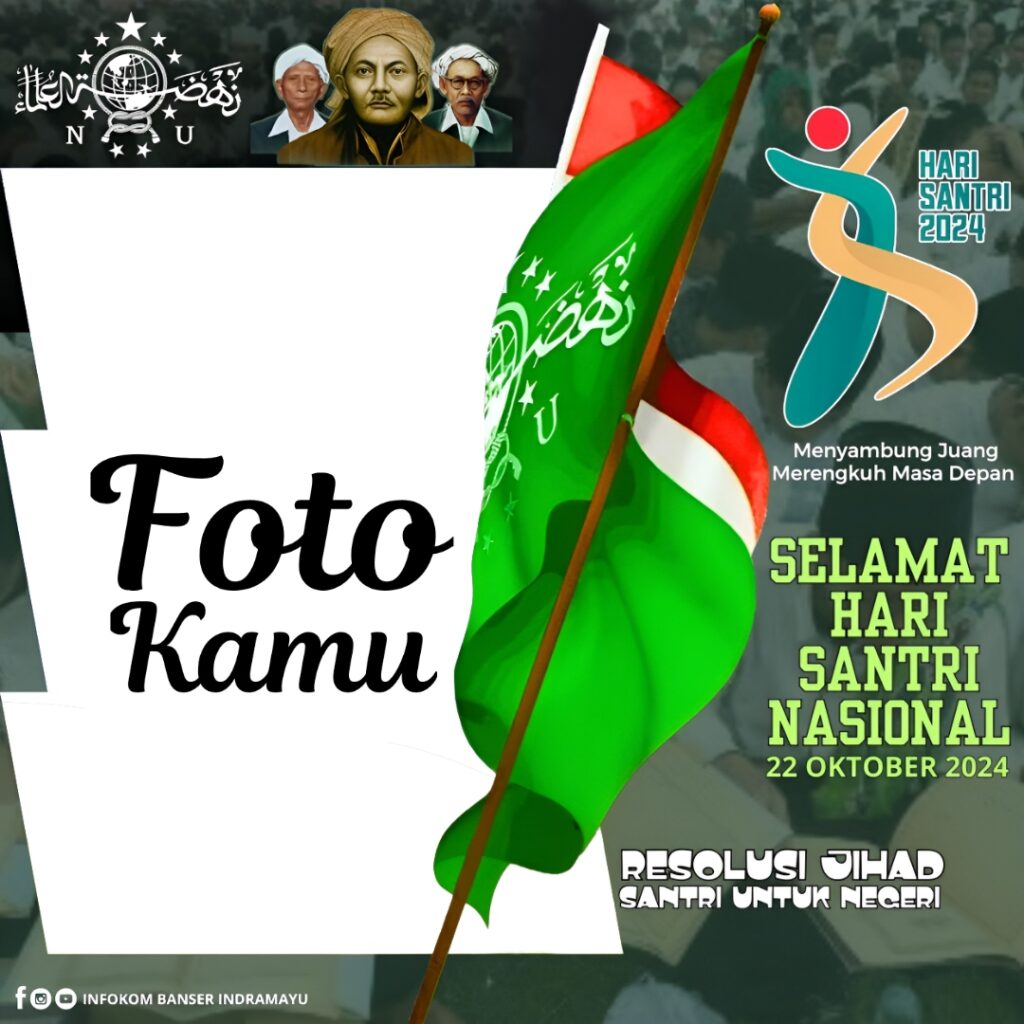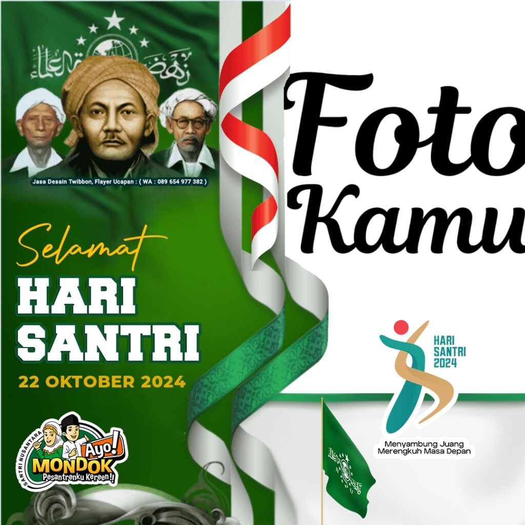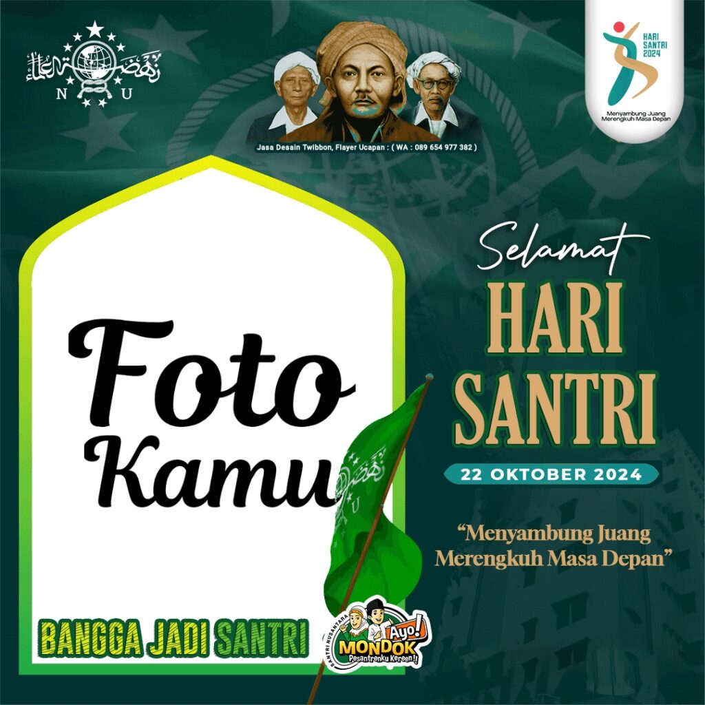 Di era digital, peringatan Hari Santri juga merambah ke dunia maya. Salah satu cara populer yang dilakukan oleh masyarakat, khususnya anak muda, adalah menggunakan Twibbon—bingkai foto digital yang dirancang khusus untuk memperingati Hari Santri. Twibbon ini biasanya dibuat dengan desain yang menarik dan dilengkapi dengan tema-tema islami serta elemen budaya santri seperti sarung, peci, dan kitab kuning.